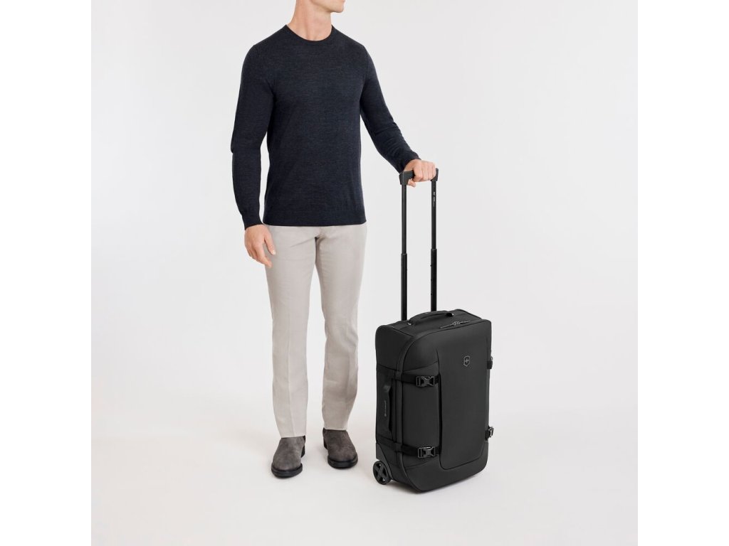 Cestovní taška na kolečkách Victorinox Altmont Modern Black s objemem 42 l nabízí praktické rozměry 55 × 35 × 23 cm a hmotnost 3 kg. Odolný materiál ze 100% recyklovaného polyesteru zajišťuje dlouhou životnost. Dvoutrubková teleskopická rukojeť a dvě kolečka umožňují pohodlnou manipulaci na cestách.