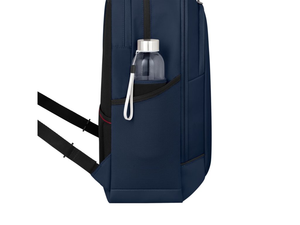 Velkou výhodou je odnímatelné pouzdro na notebook o velikosti až 15,6", které poskytuje bezpečné uložení zařízení a umožňuje jeho rychlé vyjmutí při přesunech nebo bezpečnostních kontrolách.