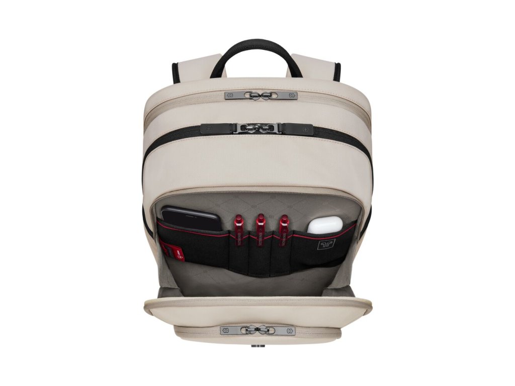Victorinox Altmont Modern Deluxe Stone White je stylový batoh navržený pro každodenní používání i pracovní cesty. Moderní světlý design doplňuje odolný polyesterový materiál a praktické uspořádání kapes, které umožňuje snadnou organizaci věcí.