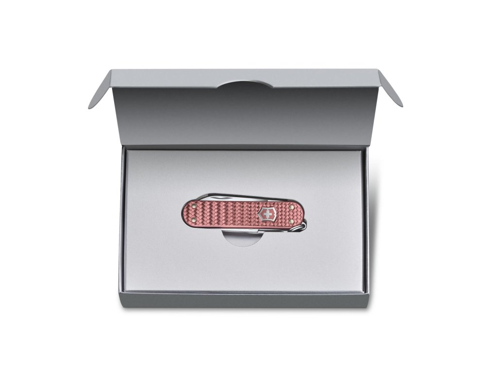 Švýcarský kapesní nůž Victorinox Classic Precious Alox Gentle Rose je ideální jako přívěsek na klíče, elegantní EDC nástroj nebo stylový dárek. Nabízí osvědčenou funkčnost Victorinox v moderním a jemném provedení.