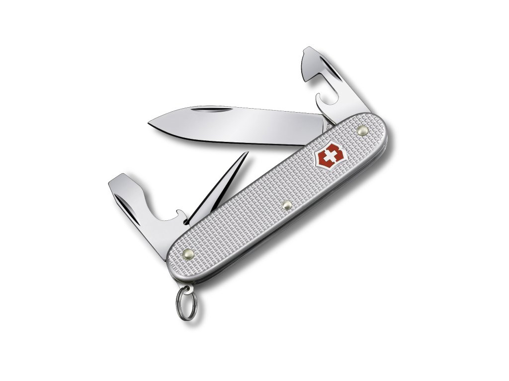 Švýcarský kapesní nůž Pioneer Alox 93 mm stříbrný s 8 funkcemi je ideální pro náročnou práci i každodenní použití. Robustní eloxovaná střenka zajišťuje spolehlivost a pohodlný úchop.