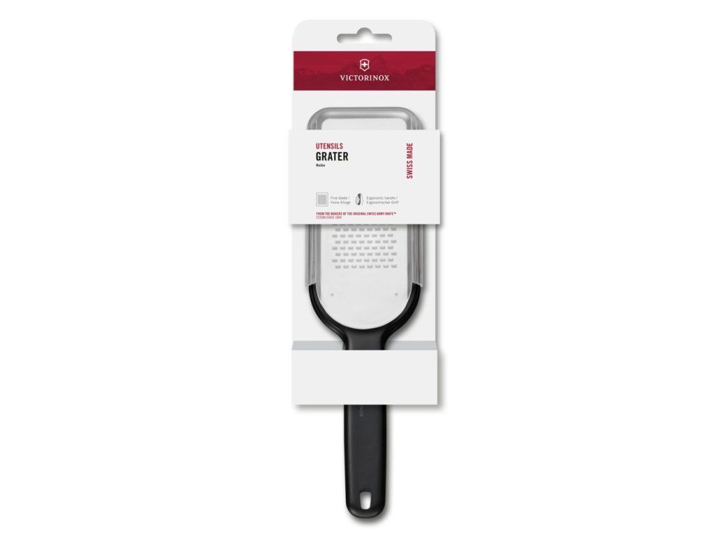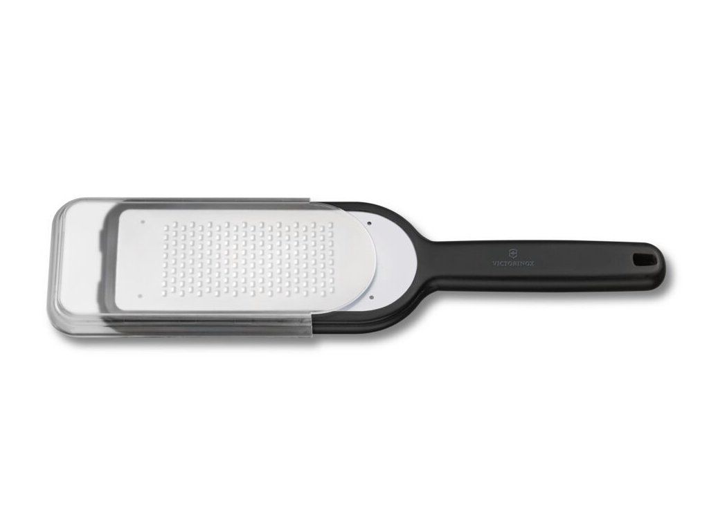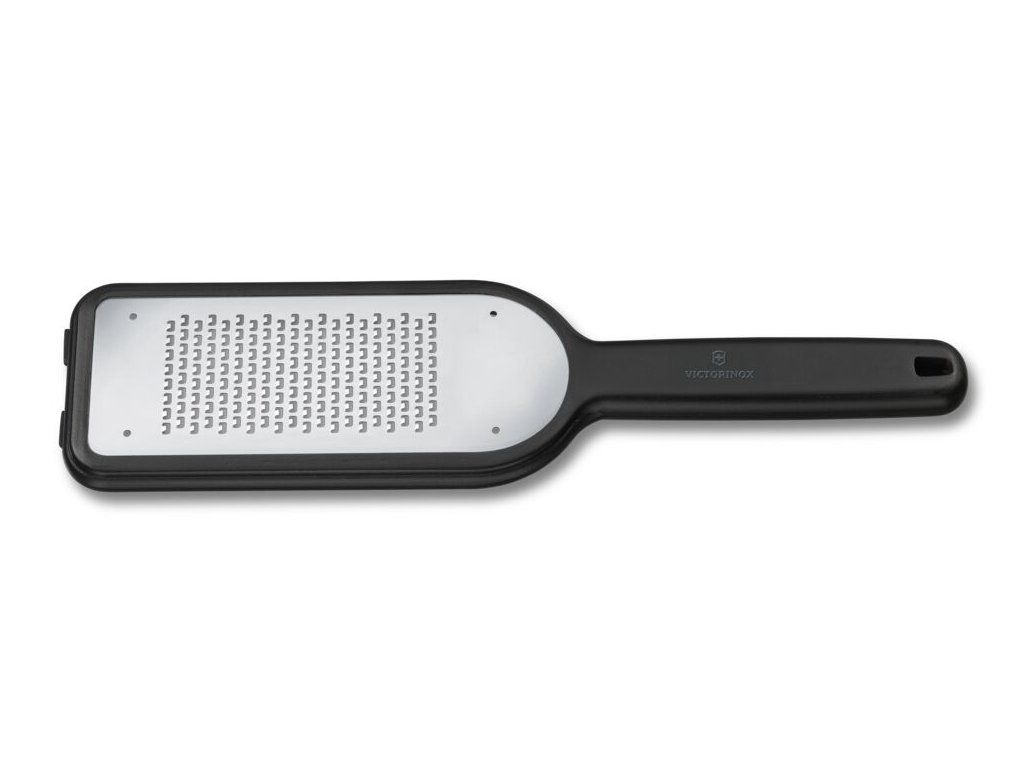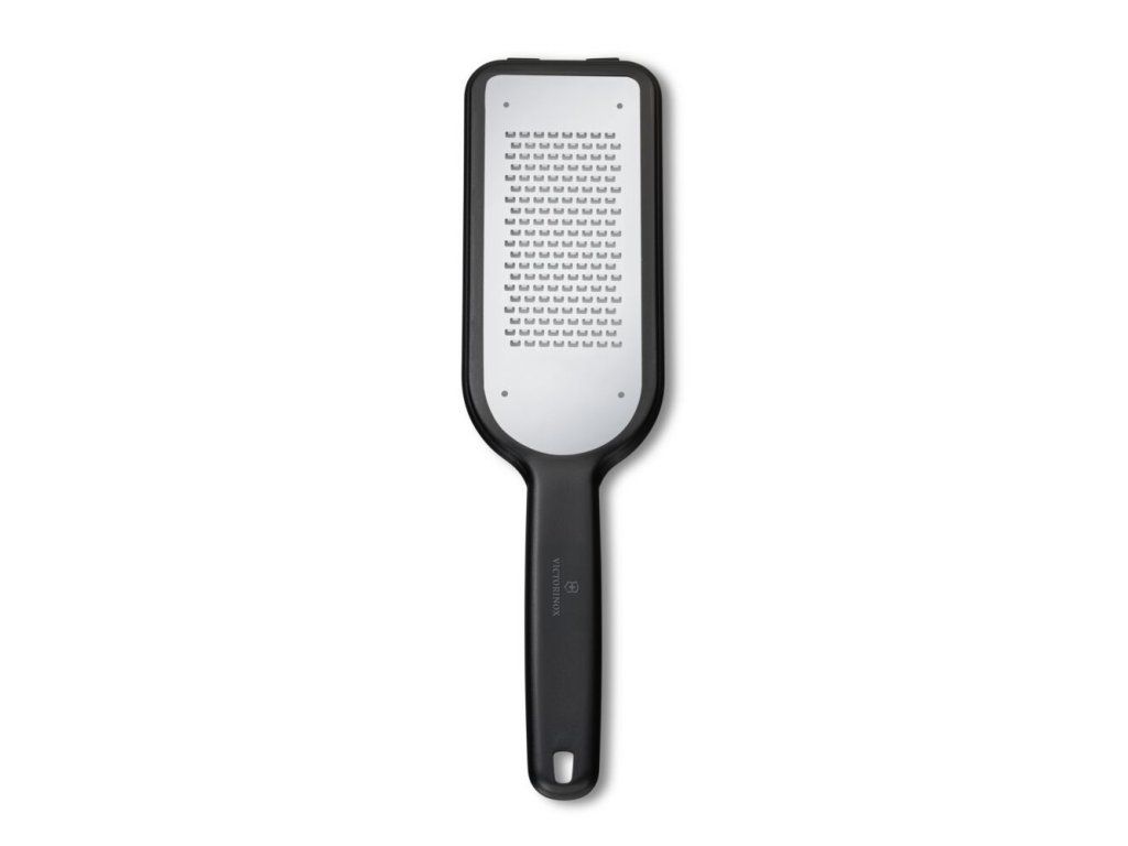 Kuchyňské struhadlo Victorinox jemné ostří černé – struhadlo s jemným ostřím pro precizní strouhání sýrů, koření i citrusové kůry. Nerezová ocel zaručuje dlouhou životnost, protiskluzové prvky bezpečnou práci. Ideální pro každodenní použití. Lze mýt v myčce. Rozměry cca 260 × 110 × 20 mm.