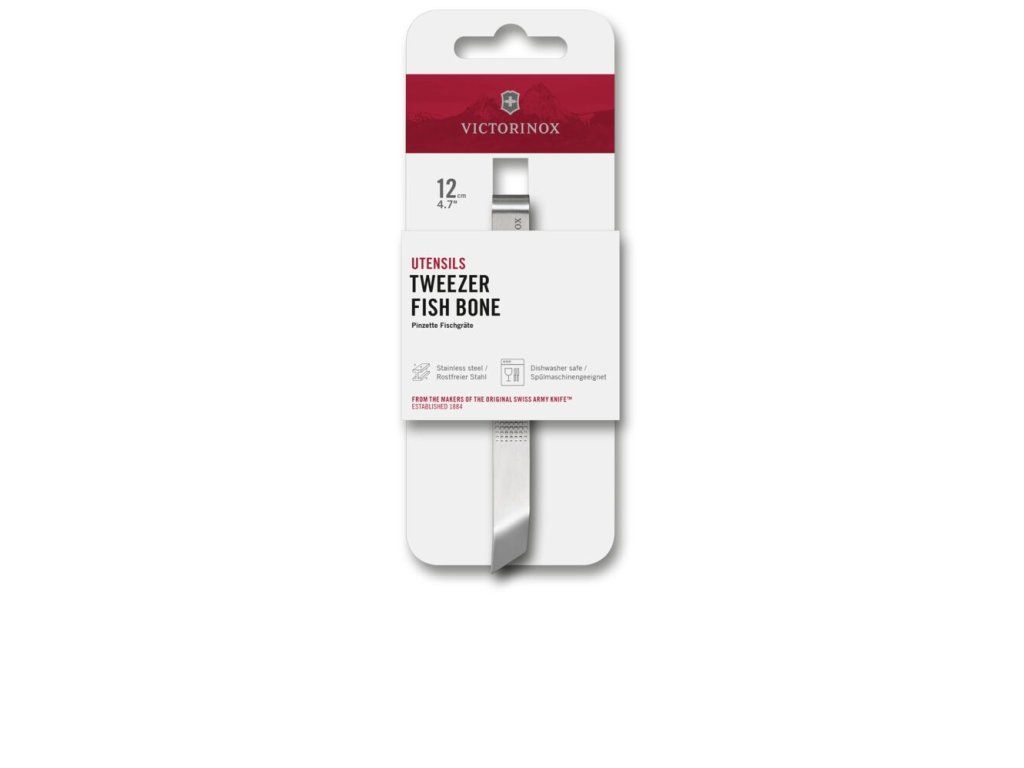 Pinzeta na rybí kosti Victorinox 12 cm – kuchyňská pinzeta z nerezové oceli pro přesné a snadné odstraňování rybích kostí. Hygienické a odolné provedení vhodné pro profesionální i domácí použití. Vhodná do myčky. Rozměry 120 × 15 × 10 mm.