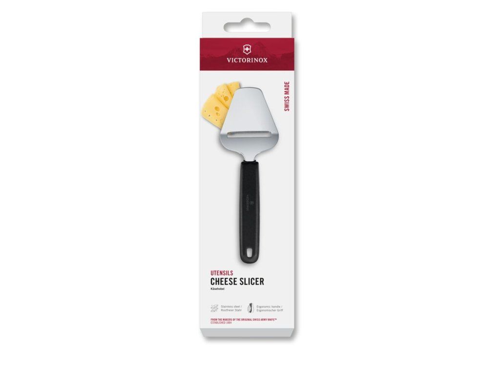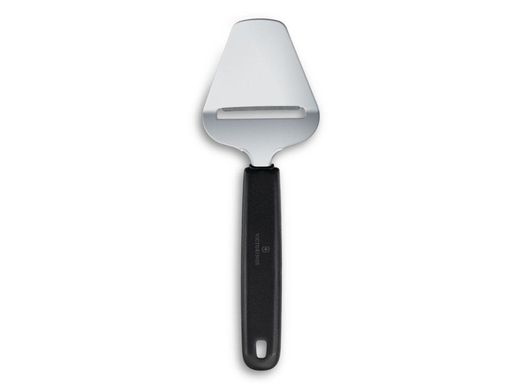 Plátkovač na sýr Victorinox černý – kuchyňský plátkovač s ostrou nerezovou čepelí pro snadné krájení tenkých a rovnoměrných plátků sýrů, másla, čokolády i zeleniny. Ergonomická rukojeť pro pohodlnou práci. Vhodný do myčky. Rozměry cca 220 × 70 × 20 mm.
