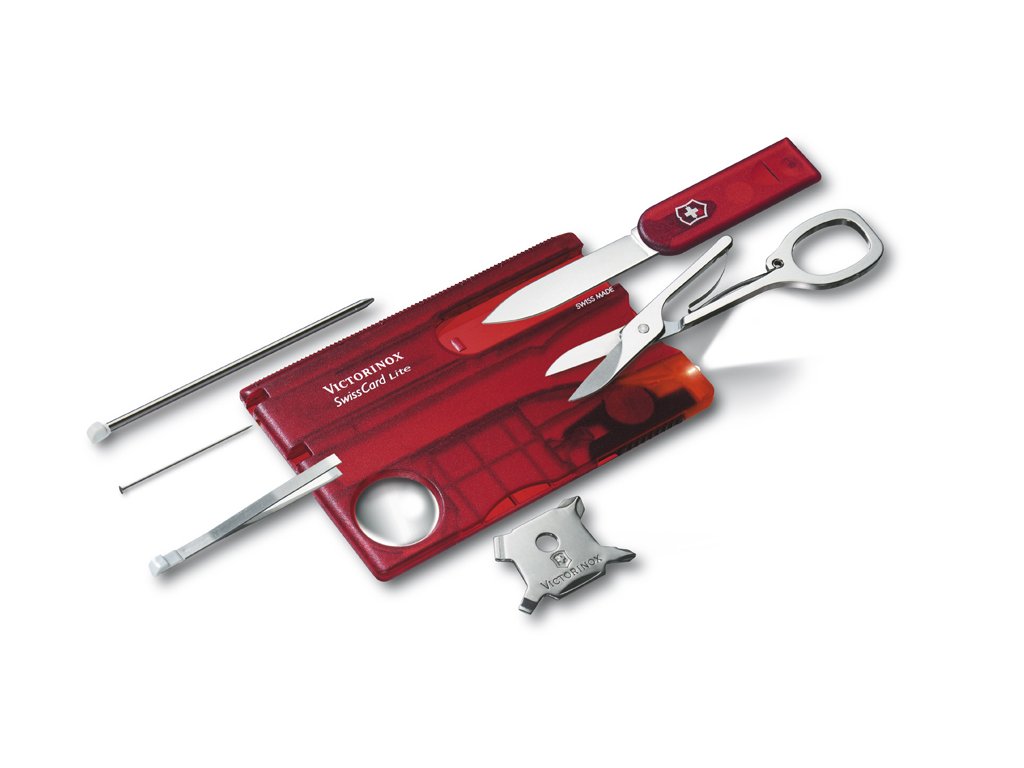 | Funkce: | Křížový šroubovák, Pinzeta, Výstružník, průbojník, Mini-šroubovák, Nůžky, Malý nůž, Tlakové kuličkové pero, Špendlík, Lupa, LED svítilna, Otvírač dopisů |