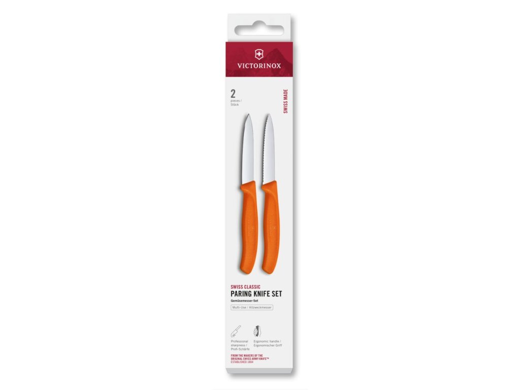 Sada nožů na loupání Victorinox Swiss Classic 2 ks 8 cm rovné/vroubkované špičaté ostří oranžové VICTORINOX